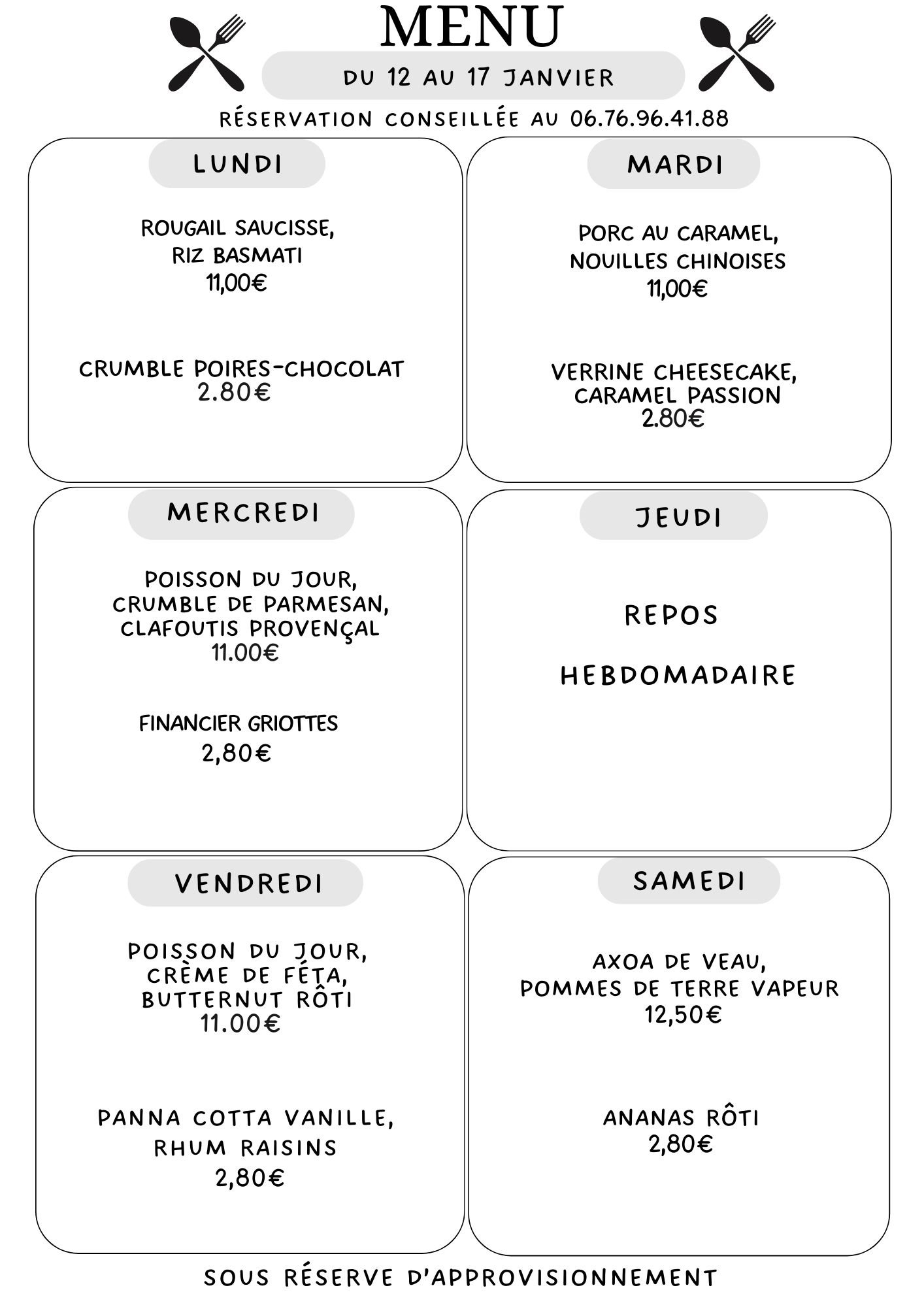 Menu de la semaine